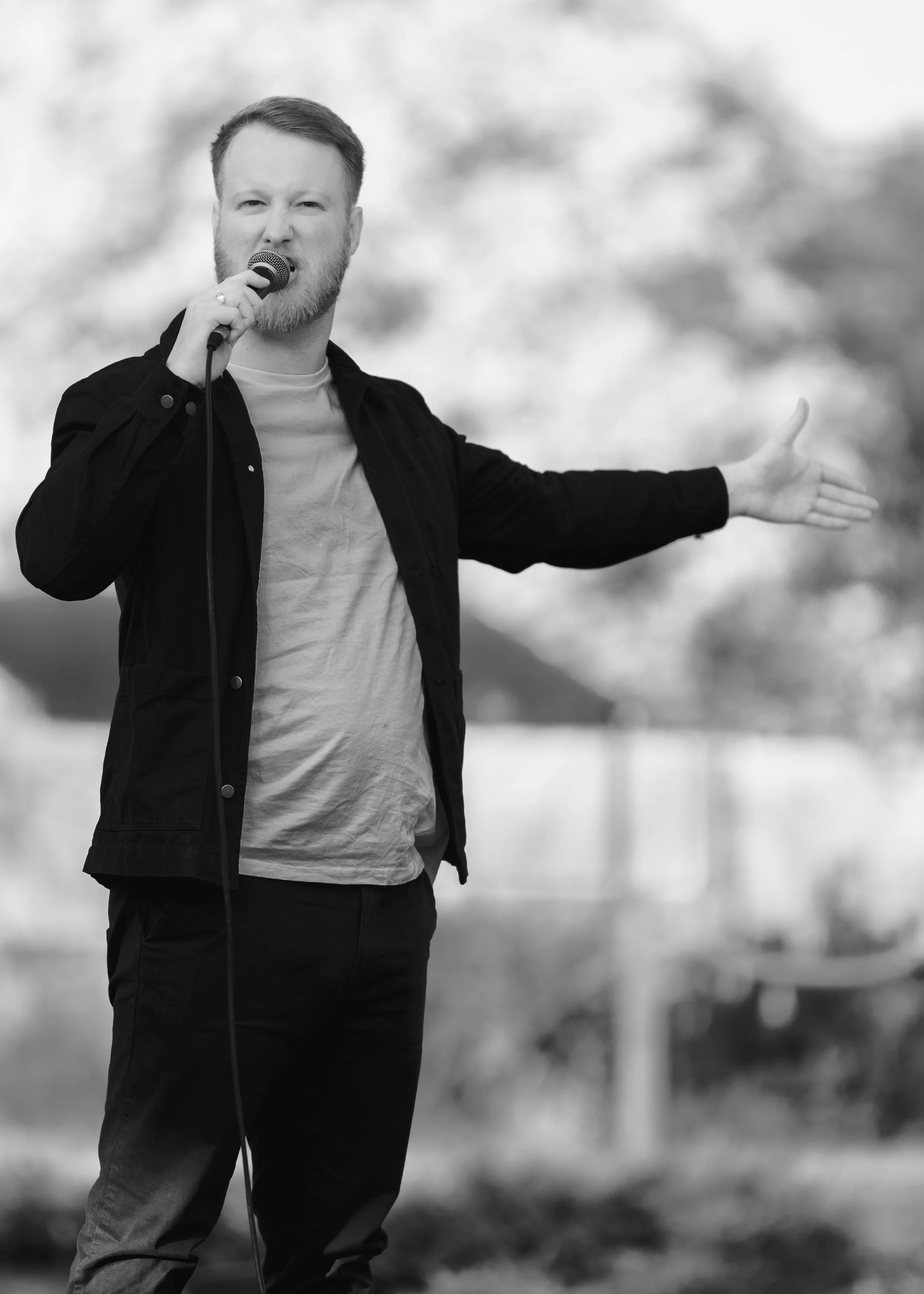 Ryan is a Chichester-based poet and performer whose work blends sharp humour with raw honesty, capturing the chaos, calm, and quiet beauty of being human. He is co-founder and host of Tongue Tied Poetry Slam, Chichester’s only poetry slam, and a finalist in the Hammer & Tongue Brighton Slam (2025 & 2026). His work has been featured on BBC Radio across the South of England. His street project, Poems for Strangers, sees him with a vintage 1960s typewriter, creating poems on the spot for anyone who asks. In 2024, he released his debut collection Write, Flight or Freeze, a heartfelt exploration of the fragility and wonder of life
